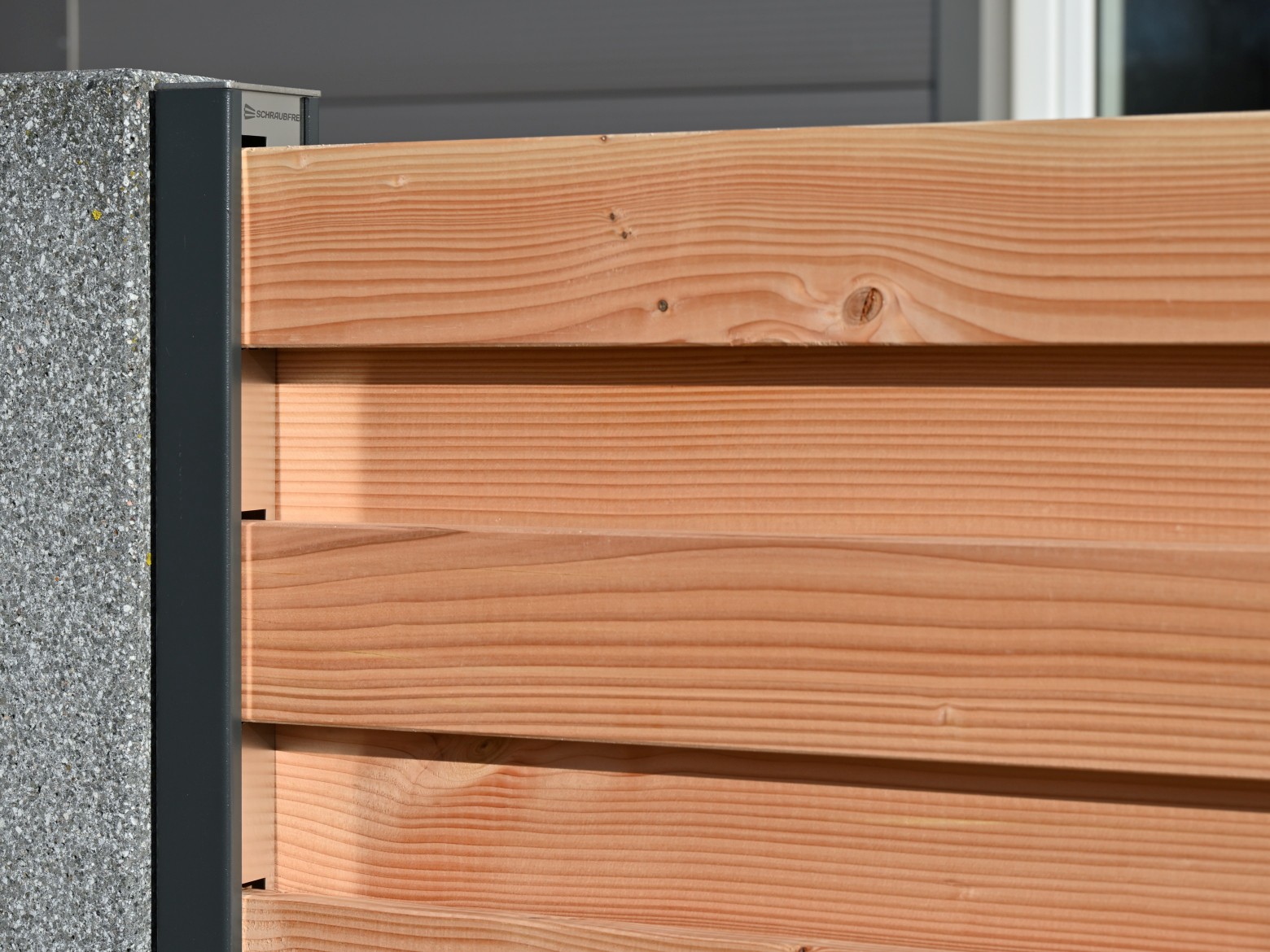 Die 9 Zentimeter hohen und 2 Zentimeter dicken Bretter sind zweizeilig im Einschubelement angeordnet, so dass sie einen blickdichten Sichtschutzzaun ergeben. Aufgrund der sehr stabilen Bretter sind hohe Spannweiten zwischen den Zaunpfählen möglich.